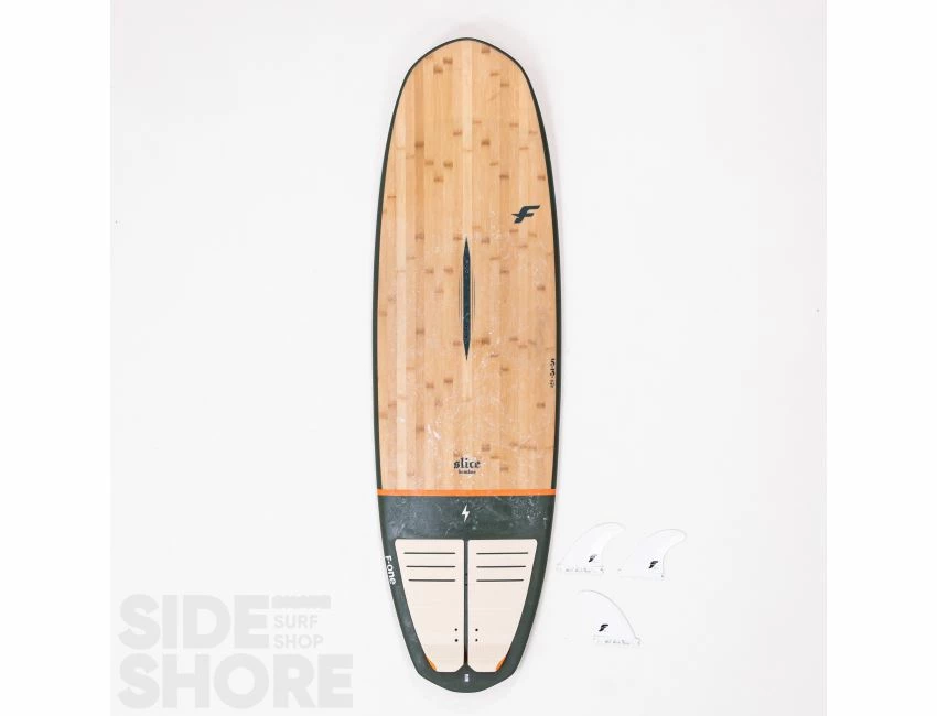 Équipée d’inserts de foot straps, de trois boitiers Future, la SLICE BAMBOO est vendue avec un jeu d’aileron. Un front pad optionnel peut être ajouté si désiré.