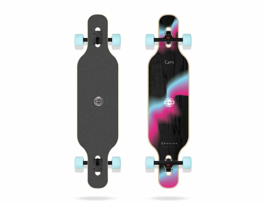 La planche Long Island Geo, conçue en bamboo et fibre de verre, est idéale pour les riders recherchant flexibilité et durabilité !