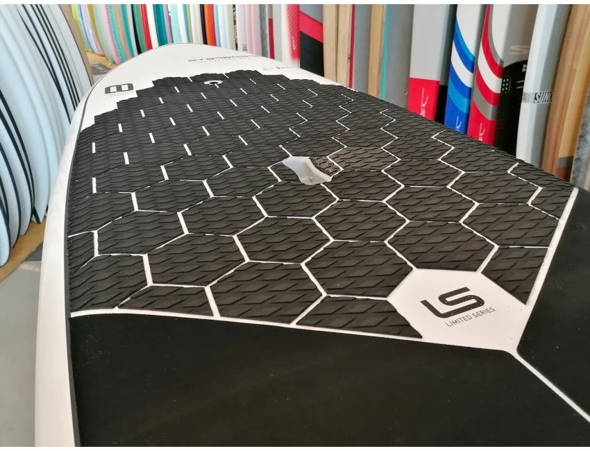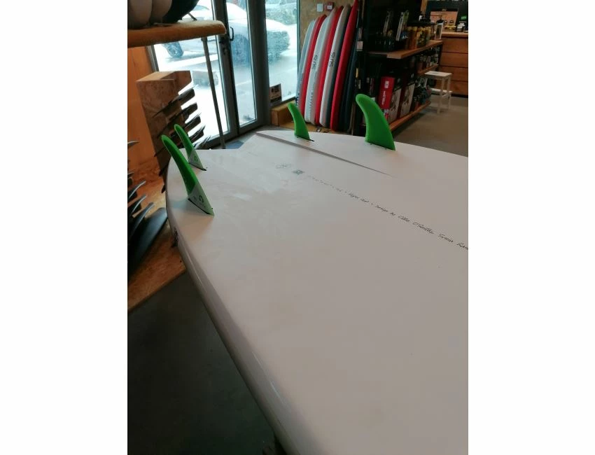 Des stringers jumelés fabriqués en fibre de verre sont positionées en haut et en bas de la planche près des rails et apportent un accroissement massif de solidité globale contre toute possibilité de casse dans les vagues.
