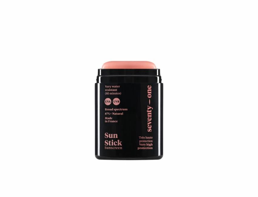 Le Sun Stick SPF 50+ c’est la tre?s haute protection solaire des zones sensibles du visage de Seventy One. Une formule comple?te et water- resistant : des filtres tre?s haute protection font barrie?re aux UVA et UVB et des actifs antioxydants et hydratants prote?gent la peau des agressions extérieures pendant l’exposition et la baignade (vent, eau salée, froid)